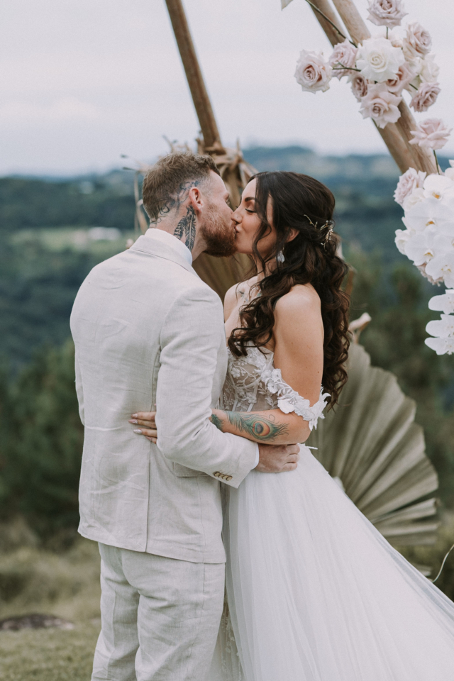 Meet Tiff and Toby. This gorgeous couple tied the knot at Summergrove Estate in northern NSW. Fun fact and Tiff and Toby’s day… Toby forgot the wedding rings the day of the wedding and had to send his best man to Byron Bay to pick them up hours before the ceremony!